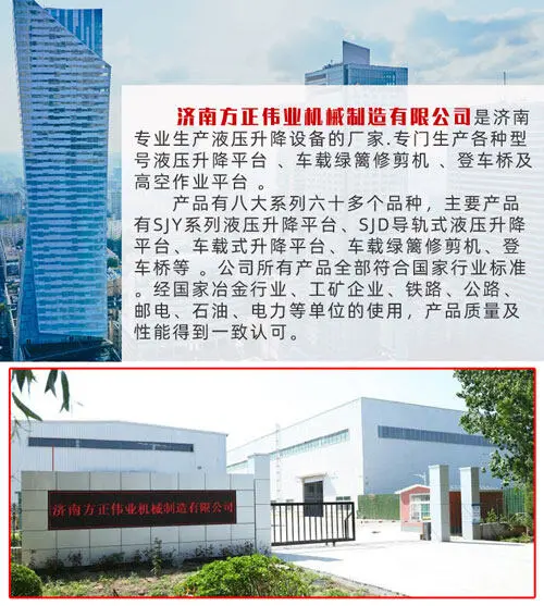 濟南盈真机电制造股份有限公司 是專(zhuan)業生産液(ye)壓升降設(she)備的廠家(jia),17 年專注升(sheng)降機🔴生🚶産(chan)研發制造(zao),專門生産(chan)各種型号(hao)液壓升降(jiang)平台、升降(jiang)機、簡易升(sheng)降機、車載(zai)🧑🏾🤝🧑🏼綠籬修剪(jian)機、登車橋(qiao)及高空作(zuo)業🏃🏻♂️平台。